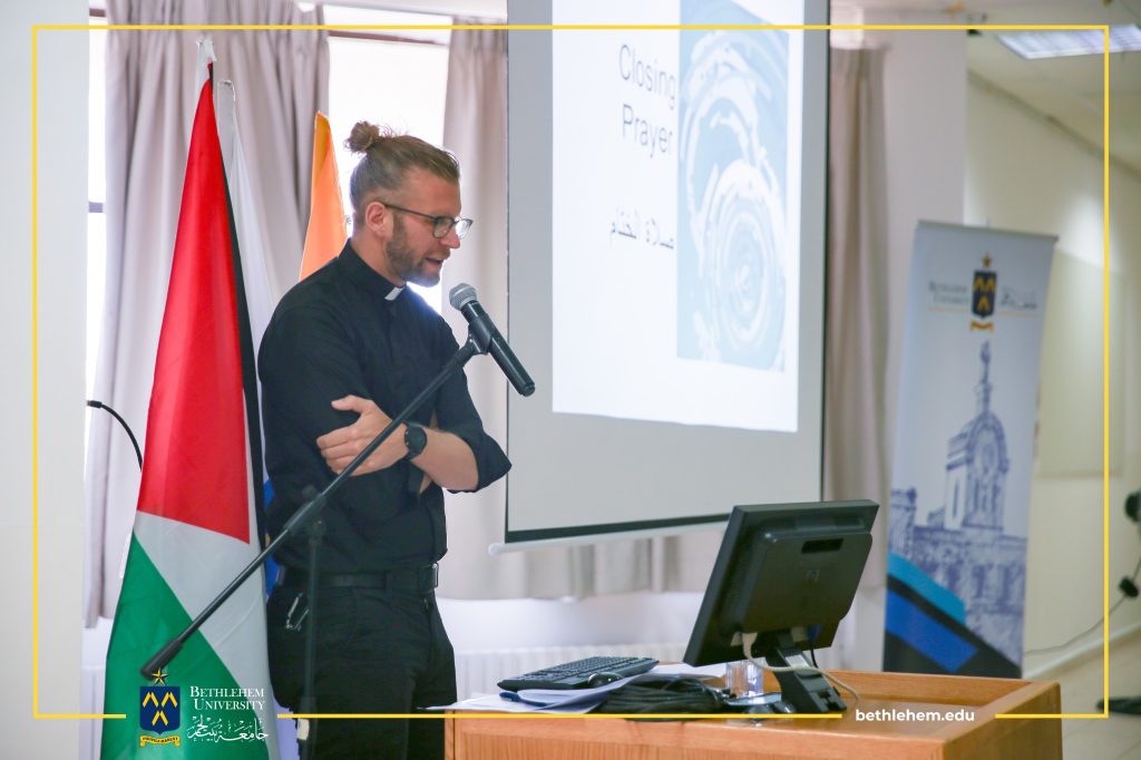 The meeting opened with a prayer and reflection led by Br. Mark McKeon, FSC, Coordinator of Institutional Values, followed by welcoming remarks from Prof. Iman Saca, Vice President for Academic Affairs. Brother Hernán Santos, FSC, Vice Chancellor of Bethlehem University, then addressed the community, highlighting this year’s theme: “We found a way”; a call to teach with excellence, accompany our students, and serve our community with renewed commitment.