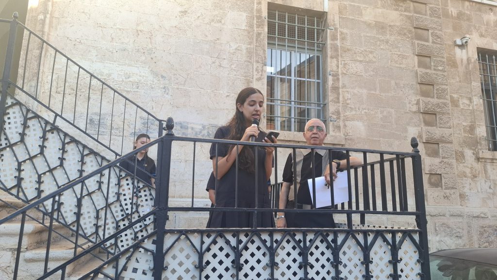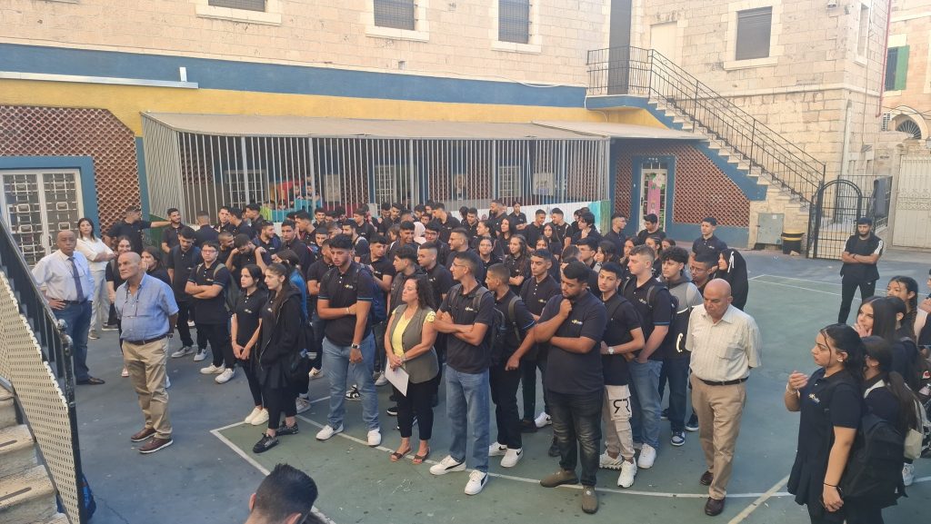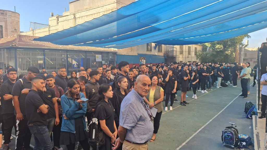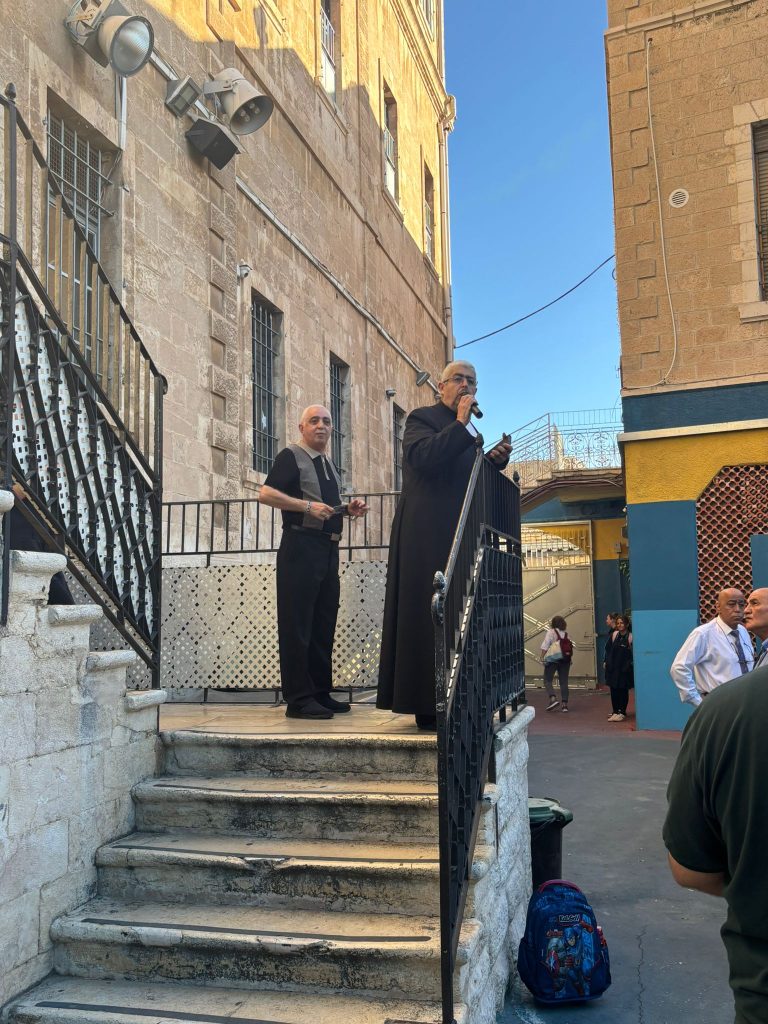 Brother Daoud Kassabry, the Director, addressed the students with heartfelt words, reminding everyone of the great honor of living in the holy city of Jerusalem and of belonging to such a prestigious school. With pride and hope, he declared the opening of the 150th Jubilee, celebrating the Brothers’ presence and the foundation of our school — a history filled with dedication and love.