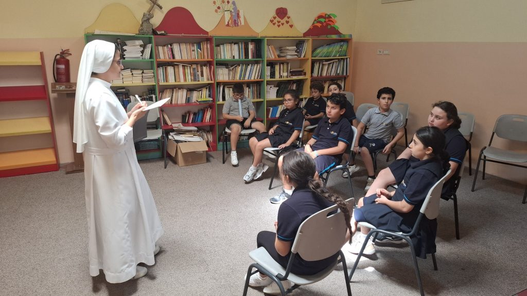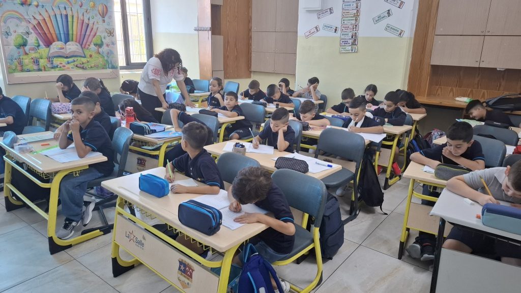 The celebration also reached the Elementary Section, where Ms. Mona Hazou warmly welcomed her young students with words that touched their hearts. Her message carried joy, tenderness, and encouragement, creating a sense of belonging for the children. The students then joyfully raised their voices together, singing the school anthem, filling the atmosphere with pride and harmony.