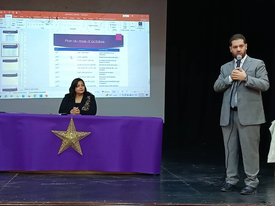 Parents et enfants ont rencontré leurs merveilleuses enseignantes, et une rencontre spéciale s’est tenue sur la scène de l’école, en présence du directeur de l’école, de la directrice de la maternelle, ainsi que des responsables pédagogiques des matières de français et d’arabe.
