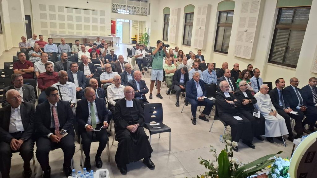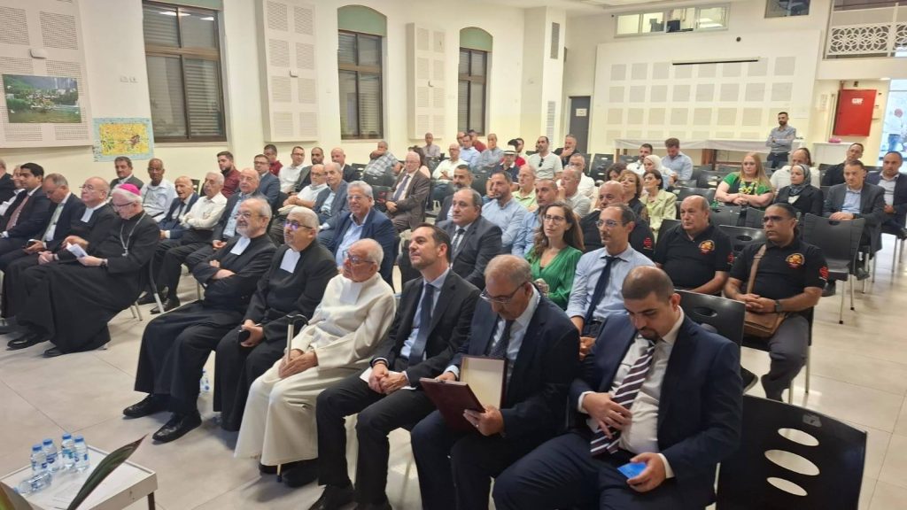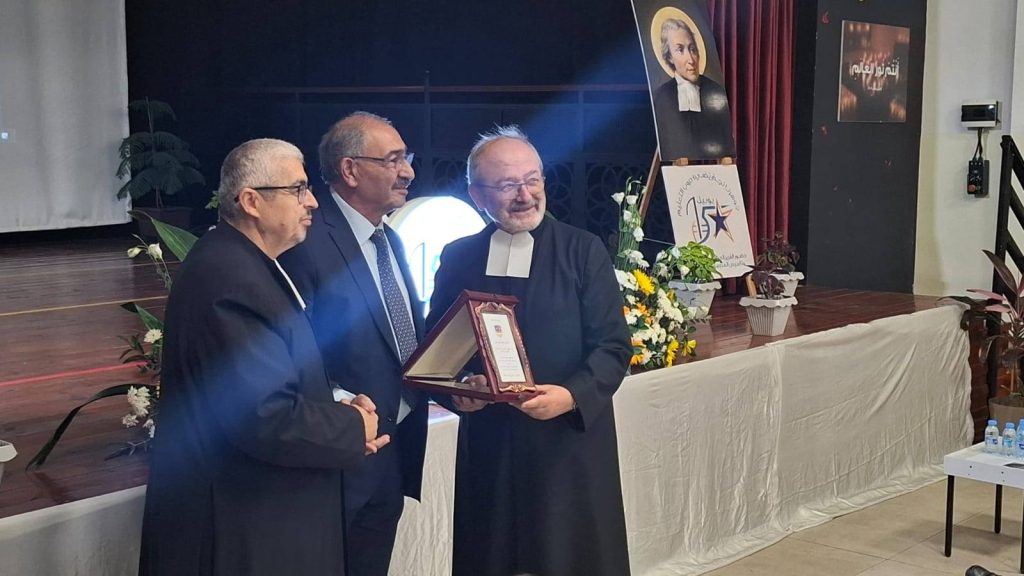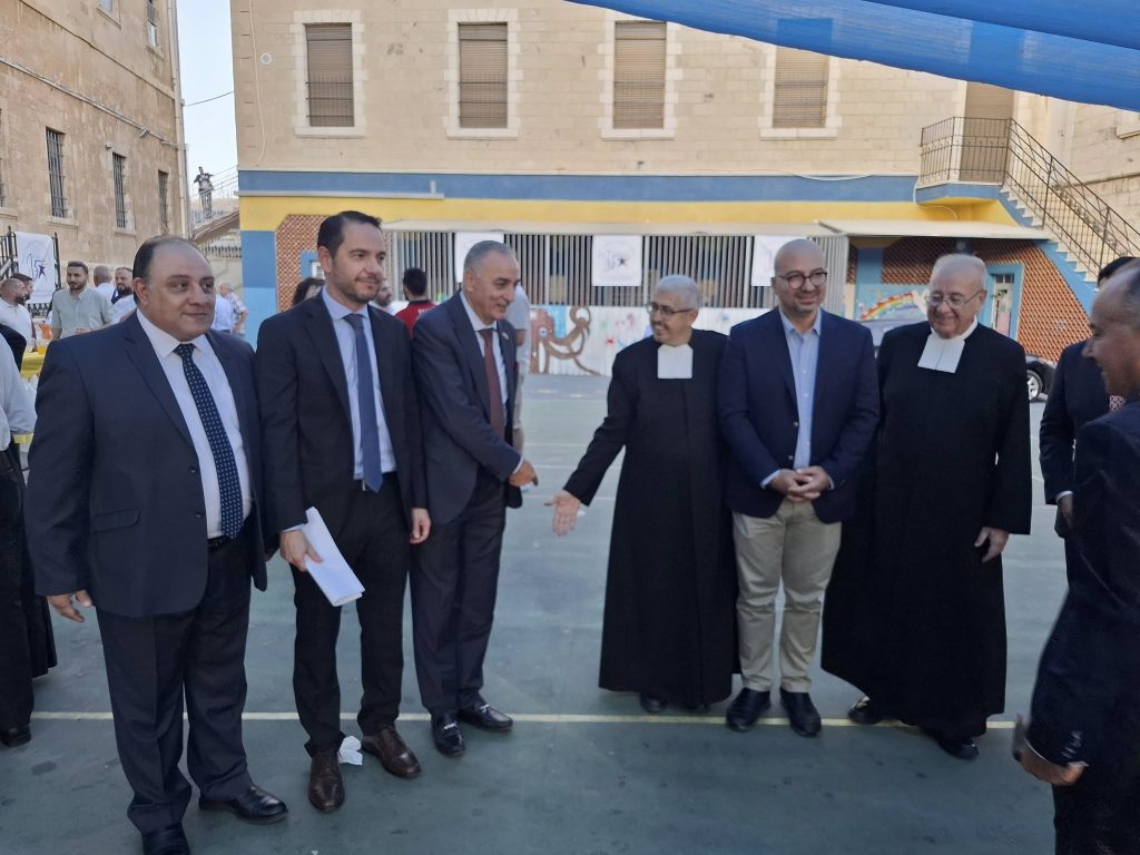 Among the Brothers present were: Brother Habib Zraibi (Visitor General), Brother George Absi, Brother Daoud Kasabri (School Director), and Brother Albert Alonzo. The event was also attended by Bishop William Shomali (Patriarchal Vicar General in Jerusalem), Ambassador Ihab Suleiman (Ambassador of the Arab Republic of Egypt) accompanied by Mr. Ahmed Al-Mulla, Mr. Nicolas Kassianides (Consul General of France), Mr. Fadi Abbas (President of the Bar Association), former Minister Dr. Hani Abdeen, former Minister of Jerusalem Affairs Mr. Fadi Al-Hidmi, Dr. Nakhleh Bayda (Chairman of the Board of Trustees of the school), Mr. George Naber, and Dr. Osama Abdullah.