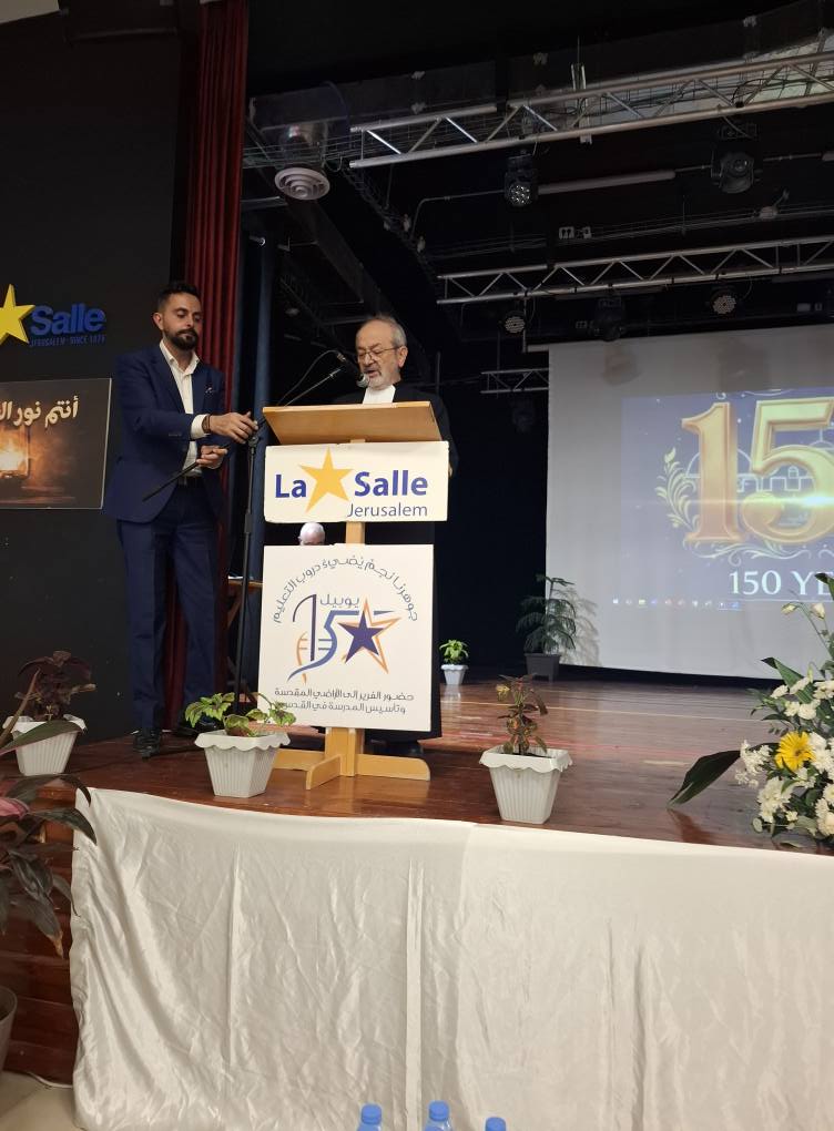 Today we stand in the heart of Jerusalem—the city of light, faith, and history—to celebrate together 150 years since the arrival of the Brothers of the Christian Schools and the founding of this historic institution. Our gathering today carries not only the meaning of remembrance but also a clear message: that this celebration is in itself a celebration of Jerusalem, which remains a beacon of hope and a source of spiritual and cultural radiance. Together, we share the responsibility of safeguarding its future, each from his own position and role.