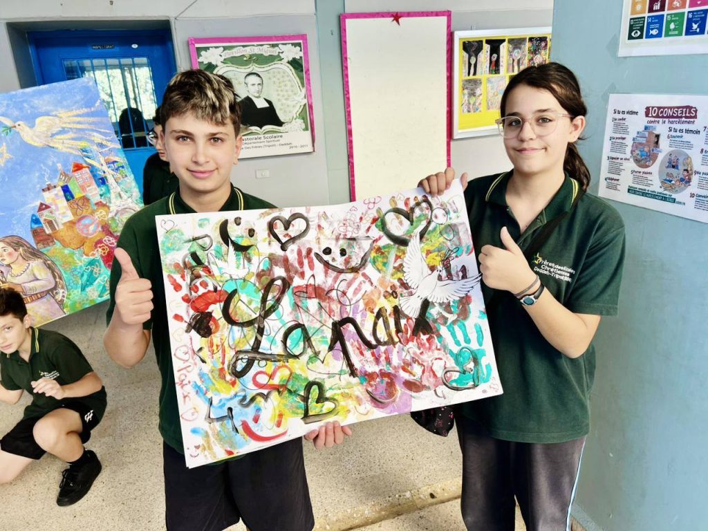 Mais c’est surtout à travers les arts plastiques que cette thématique a pris une dimension concrète et sensible. Encadrés par leur enseignant, M. Elie Zeini, les élèves ont exprimé leur vision personnelle de la paix à travers des toiles et des tableaux à la fois colorés, profonds et porteurs de sens. Chaque œuvre raconte une histoire : celle d’un monde plus juste, plus harmonieux, où le respect et la solidarité deviennent les véritables couleurs de la vie commune.