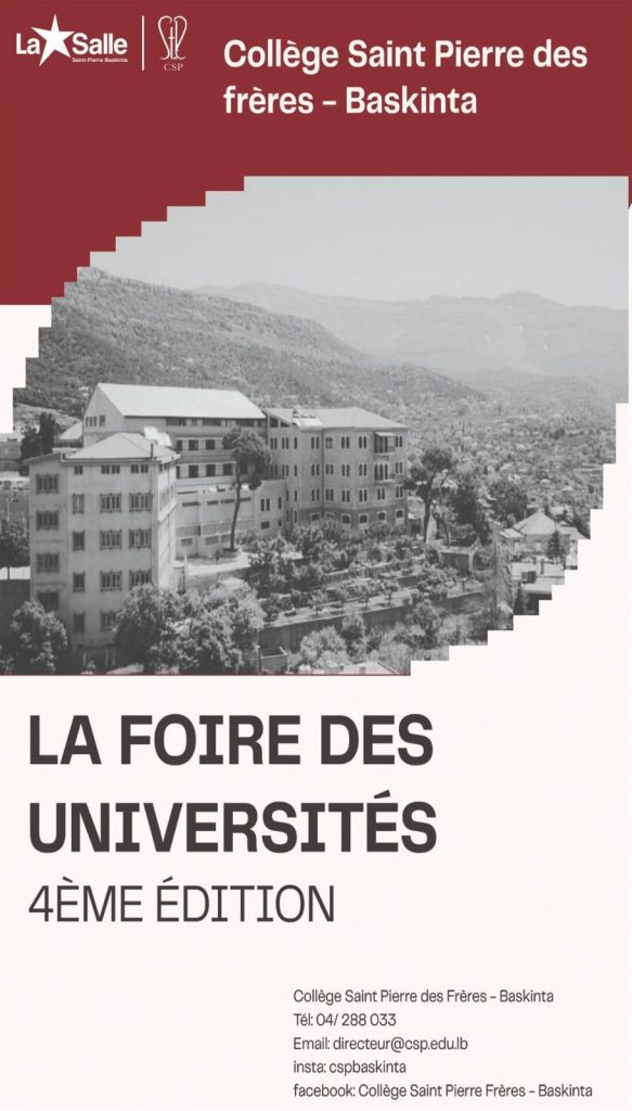 Le Collège Saint- Pierre des Frères Baskinta a accueilli des universités de tout le Liban à l’occasion d’une journée d’orientation dédiée à ses propres élèves ainsi qu’à ceux des villages voisins.