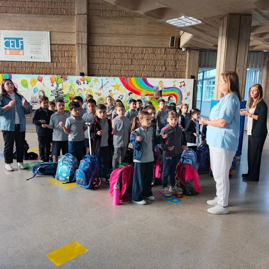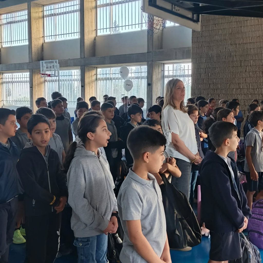 Magnifique clôture des projets du mois de la paix ! Tous les élèves du cycle primaire se sont réunis dans la cour pour un moment fort, chantant ensemble la belle mélodie :