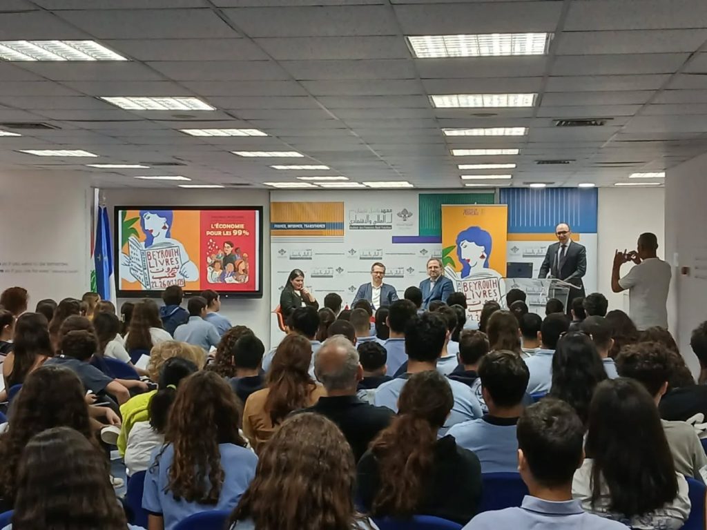 Nos élèves ont participé à une rencontre-débat passionnante autour du livre L’économie pour les 99 %, avec Thomas Porcher et Raphaël Ruffier-Fossoul, dans le cadre du festival « Beyrouth Livres 2025 » à l’Institut Basil Fuleihan, le 23 octobre 2025. Nos élèves étaient accompagnés par leur professeur de Soci-Éco, Mme Marie-Grace Abou Jaoudeh.