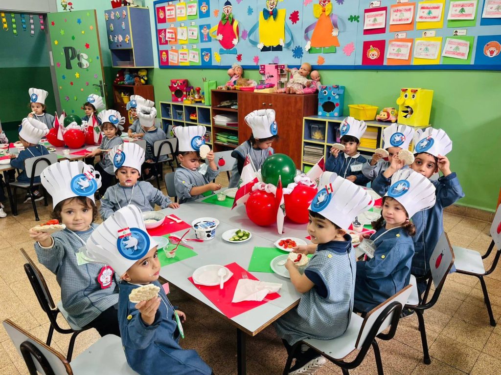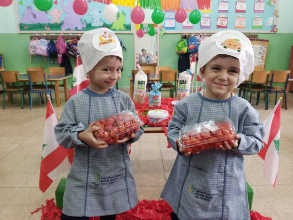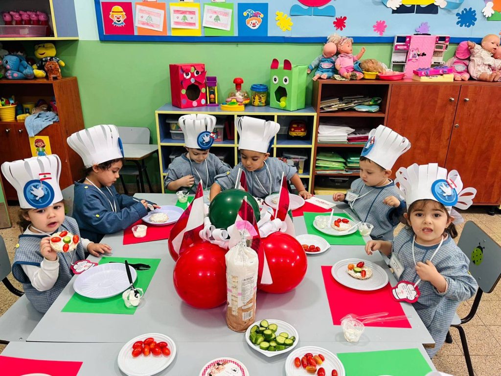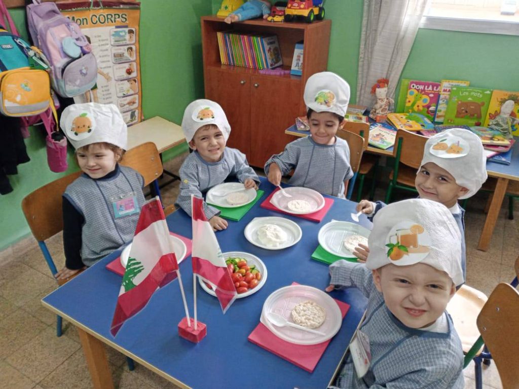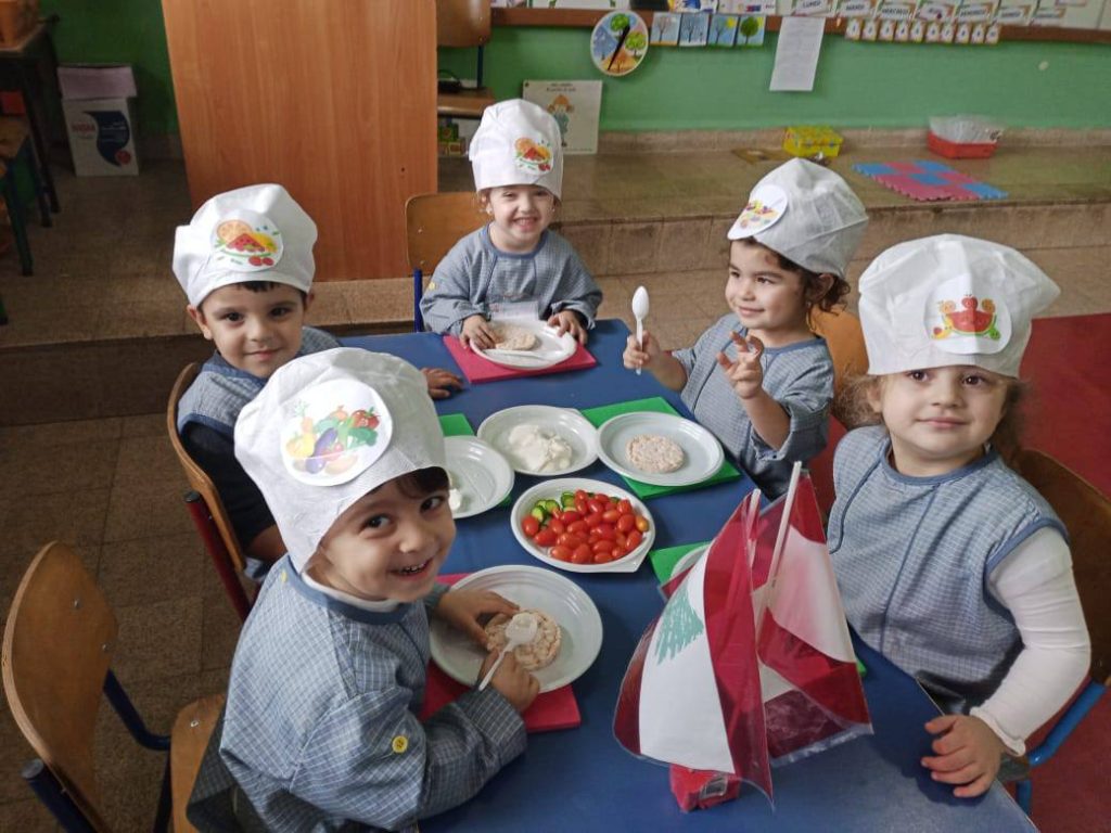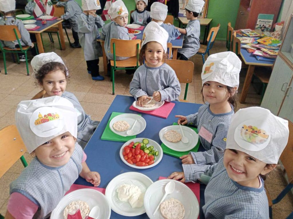 Les tout-petits chefs du CND ont préparé de belles galettes de riz au labné en mélangeant, décorant, tous excités tomates et concombres bien découpés !