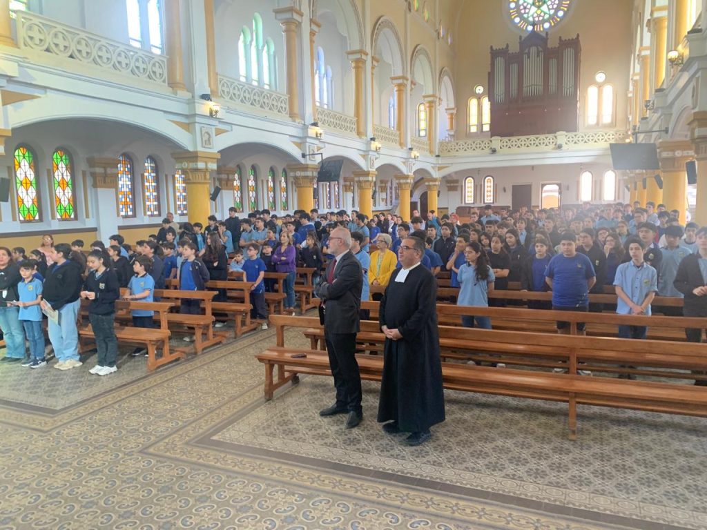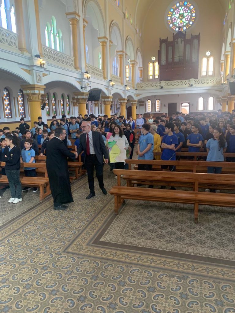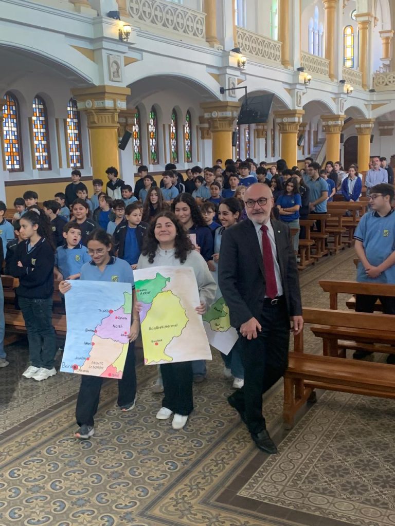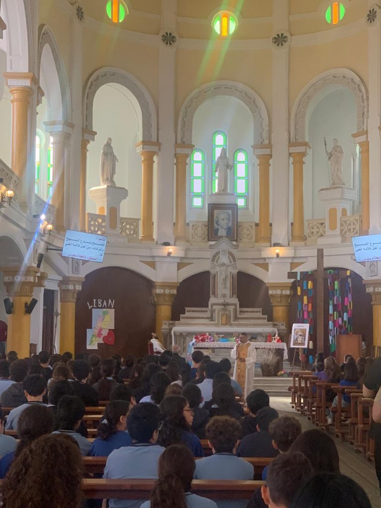 Le mercredi 19 novembre, une messe solennelle a été célébrée à 9 heures dans notre établissement scolaire, en présence de tous les élèves du primaire, du complémentaire et du secondaire. Ce temps de prière communautaire a été l’occasion de confier notre pays, le Liban, au Seigneur, en demandant paix, espérance et unité pour notre nation.