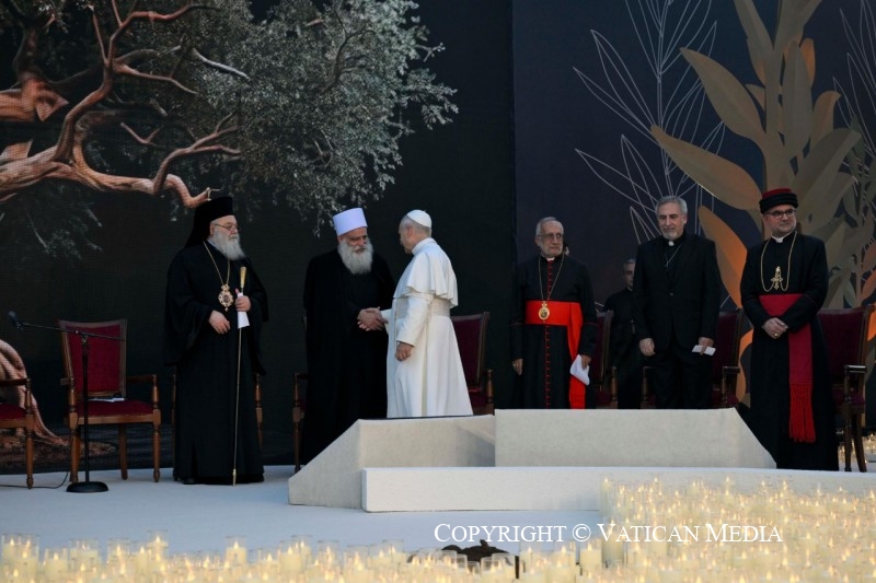 Dans son Exhortation apostolique post-synodale Ecclesia in Medio Oriente, signée ici à Beyrouth en 2012, le Pape Benoît XVI a souligné que « la nature et la vocation universelle de l’Église exigent qu’elle soit en dialogue avec les membres des autres religions. Ce dialogue est fondé au Moyen-Orient sur les liens spirituels et historiques qui unissent les chrétiens aux juifs et aux musulmans. Ce dialogue, qui n’est pas d’abord dicté par des considérations pragmatiques d’ordre politique ou social, repose avant tout sur des fondements théologiques qui interpellent la foi » (n. 19). Chers amis, votre présence ici aujourd’hui, dans ce lieu remarquable où les minarets et les clochers des églises se dressent côte à côte, mais s’élèvent tous deux vers le ciel, témoigne de la foi inébranlable de cette terre et de la dévotion sans faille de son peuple envers le Dieu unique. Ici, sur cette terre bien-aimée, puisse chaque son de cloche, chaque adhān, chaque appel à la prière se fondre et s’élever en un seul hymne, non seulement pour glorifier le Créateur miséricordieux du ciel et de la terre, mais aussi pour élever une prière sincère pour le don divin de la paix. Depuis de nombreuses années, et particulièrement ces derniers temps, les yeux du monde sont rivés sur le Moyen-Orient, berceau des religions abrahamiques, observant le laborieux cheminement et la quête incessante du précieux don qu’est la paix.