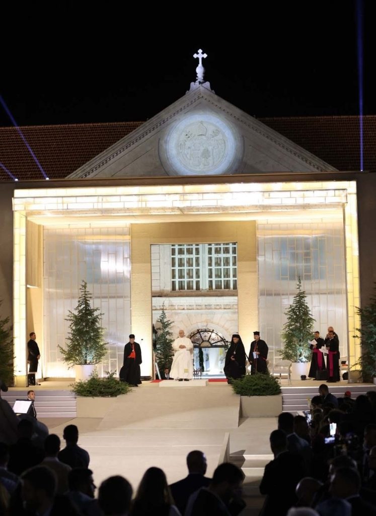 Léon XIV est finalement arrivé en papamobile une fois la nuit tombée, accueilli par une foule en liesse. Avant de prendre la parole, le Pape a écouté les témoignages de quatre jeunes choisis pour raconter leurs joies et leurs peines face aux nombreuses crises qui ont bouleversé leur pays. Parmi eux, Anthony et Maria, venus souligner combien l’explosion du port de Beyrouth le 4 août 2020 avait impacté leur cœur. La souffrance fut immense. Mais, «sous les décombres, quelque chose d’inattendu a émergé: la solidarité, l’unité et un sentiment civique renouvelé», ont-ils déclaré. Avec d’autres Libanais, ils ont retroussé leurs manches et ont déblayé les rues, réparé les maisons endommagées, accompagné les blessés et soutenu tous ceux qui avaient vécu ce traumatisme. Soudain, la communauté d’origine n’avait plus d’importance, tous étaient libanais et unis, assurent Anthony et Maria. Elie, pour sa part, a raconté qu’il lui arrivait souvent d’entendre une voix intérieure qui lui suggèrait de quitter le pays, de se sauver. «Le Liban ne m’a jamais offert de garanties, pas même le confort de savoir de quoi demain serait fait. L’effondrement économique m’a dépouillé», assure-t-il. Pourtant, Elie a choisi de rester au pays. Il se dit convaincu que les difficultés ne sont pas une invitation à fuir, mais un appel à réfléchir avec plus de lucidité, à aimer avec plus de courage et à agir pour le changement, même au prix d’un moindre confort.
