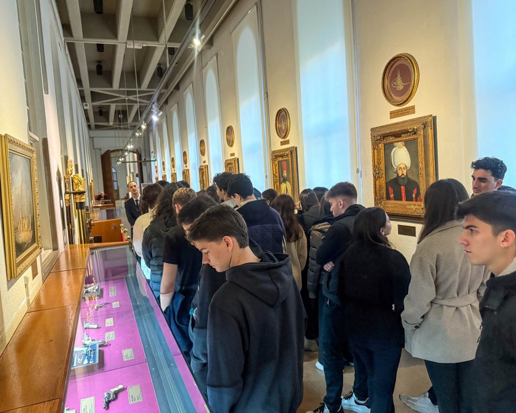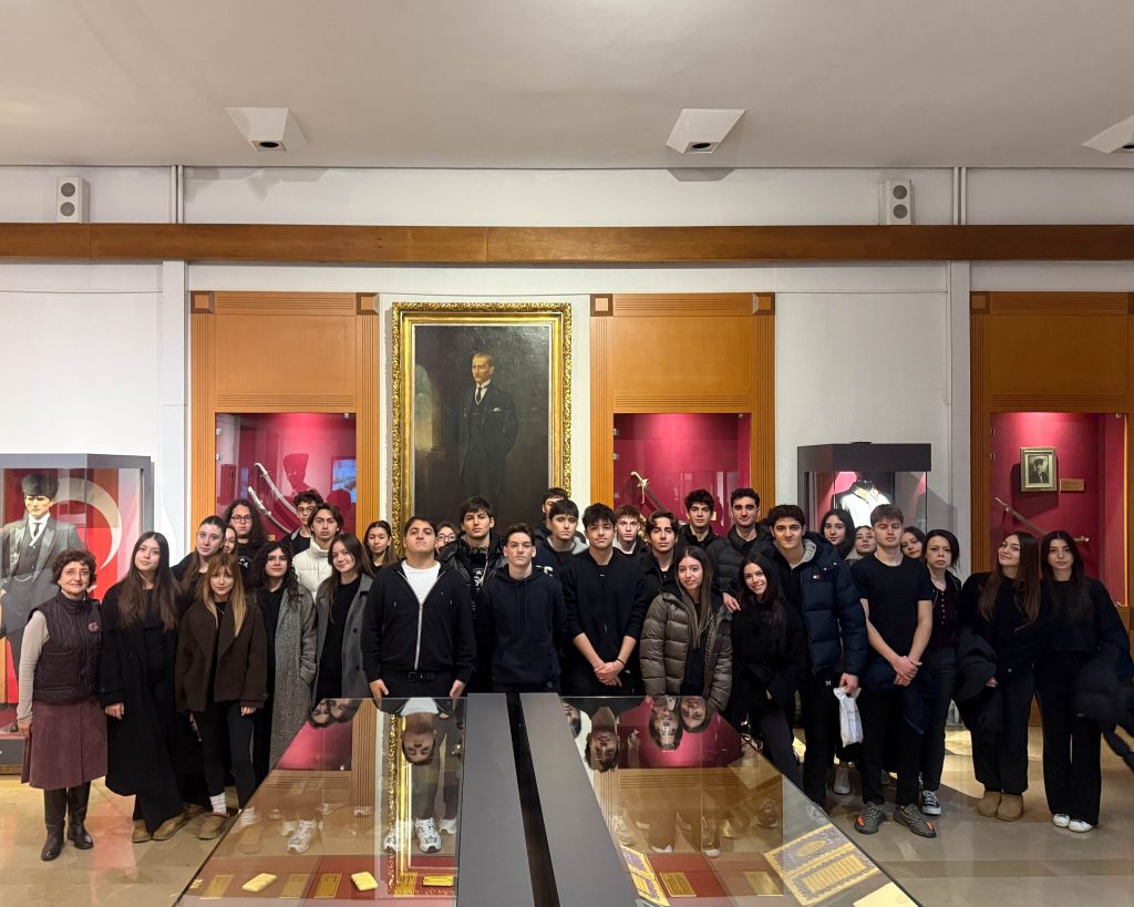 Dans le cadre de la Journée des Sciences Sociales organisée dans notre établissement, les élèves des classes 11D et 11E ont participé à des activités à la fois au sein de l’école et en dehors. La première activité a été la visite que nous avons organisée avec nos élèves au Musée militaire de Harbiye. Lors de cette visite, nos élèves ont examiné des œuvres et des collections relatives à l’histoire des Turcs d’Asie centrale, à l’histoire ottomane ainsi qu’à l’histoire de la période républicaine récente.