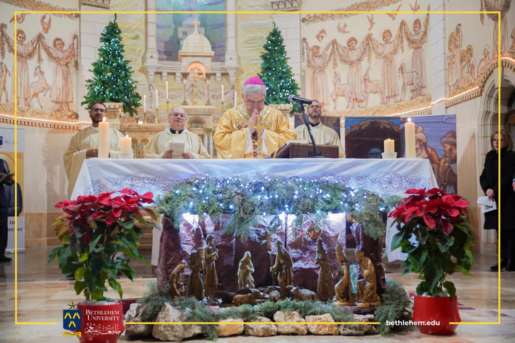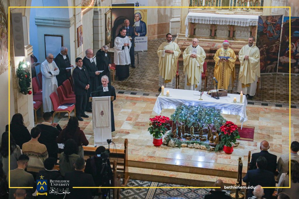 Bethlehem University marked the arrival of Christmas with a solemn Midnight Mass at the Chapel of the Divine Child, an event filled with joy, reflection, and spiritual renewal. The Mass was presided over by His Excellency Archbishop Adolfo Tito Yllana, Chancellor of Bethlehem University and Apostolic Delegate to Jerusalem and Palestine.