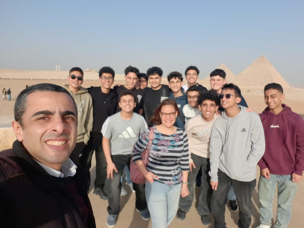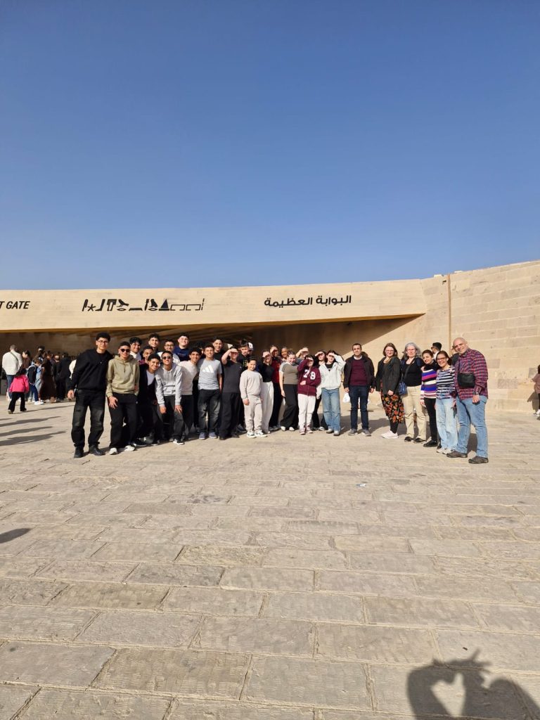 Dans le cadre de ce projet interculturel, les élèves de 3ᵉ préparatoire de l’École Saint-Gabriel vivent une semaine exceptionnelle aux côtés de leurs correspondants français du Collège Maurice Barrès de Verdun. Après avoir chaleureusement accueilli leurs invités, ils ont commencé cette aventure par la découverte des pyramides de Gizeh et du Sphinx, symboles emblématiques de l’histoire égyptienne.