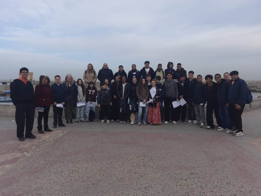 Après leur découverte du Caire, nous avons eu le grand plaisir d’accueillir les collégiens du collège Barrès au sein de notre établissement, le collège Saint-Gabriel d’Alexandrie. Après une nuit reposante et un bon petit-déjeuner, nous les avons accompagnés pour une journée riche en découvertes : visite de la citadelle de Qaitbay, construite sur le site de l’ancien phare d’Alexandrie, découverte de la célèbre Bibliothèque d’Alexandrie et de son planétarium, puis promenade sur la corniche. L’après-midi a été marqué par la visite de la Cathédrale Saint-Marc, suivie d’un moment convivial autour d’un goûter local très apprécié. La journée s’est achevée dans un bel esprit de partage par un match de football entre élèves égyptiens et français, puis un dîner chaleureux au restaurant. Une journée mémorable placée sous le signe de la culture, de l’échange et de l’amitié.