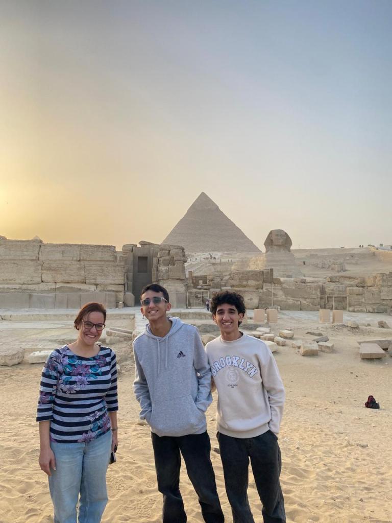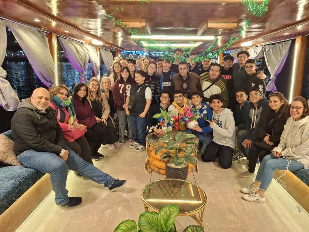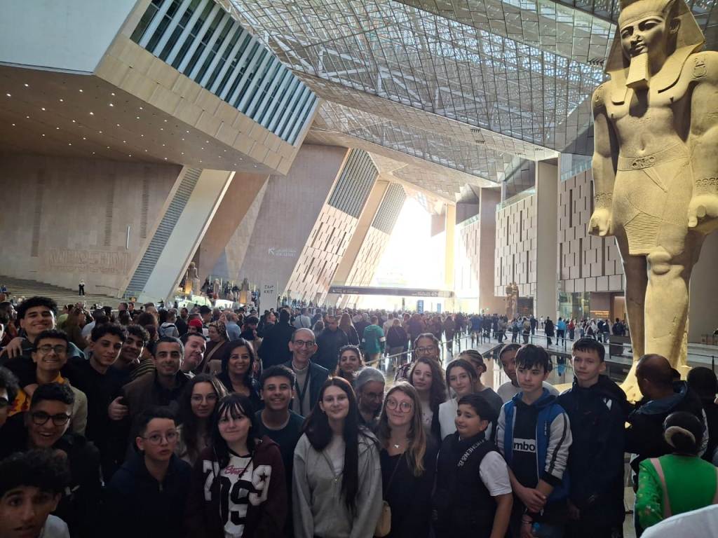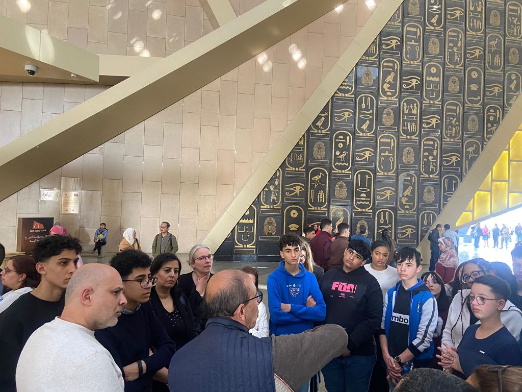 La quatrième journée a débuté par le départ vers le Caire. Le programme a été riche et varié : visite du Musée des Illusions où les élèves se sont beaucoup amusés et ont pris de nombreuses photos souvenirs, puis découverte du Grand Musée du Caire accompagnés d’un guide qui leur a présenté l’histoire fascinante de l’Égypte antique. Une pause déjeuner autour d’un savoureux plat de koshari, très apprécié de tous, a réuni le groupe avant une agréable balade en bateau sur le Nil, rythmée par la musique et la danse dans une ambiance joyeuse. La journée s’est poursuivie par un passage au célèbre marché de Khan el-Khalili, coloré et animé, qui a beaucoup plu aux élèves, avant le retour à l’hébergement pour leur dernière nuit en Égypte. Une journée simple, mais riche en découvertes et en amitié.