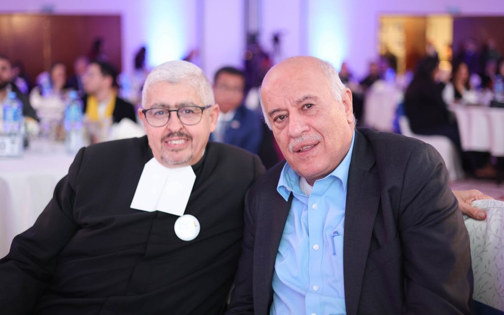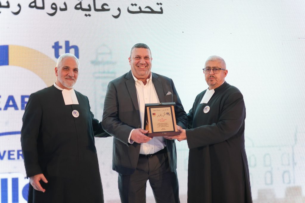 Representatives of academic, educational, and community institutions also participated, led by the Director of Frères School in Jerusalem, Brother Daoud Kassabry; Brother Peter irlano from Bethlehem University; Mr. George Al-Nabr; and Mrs Ikhlas Banoura. The event further welcomed a notable presence of business leaders, friends, and supporters, including Mr. Bashar Hussein, General Chairman of Al-Wataniya Insurance; Mr. Alex Hanna, General Manager of the Alex Group; Mr. Elias Tamas, General Manager of Ithar Foundation; Ms. Latifa Wakiliya, Director of the Natvity Office; and Dr. Omayya Khammash, Director of Juthoor Foundation.