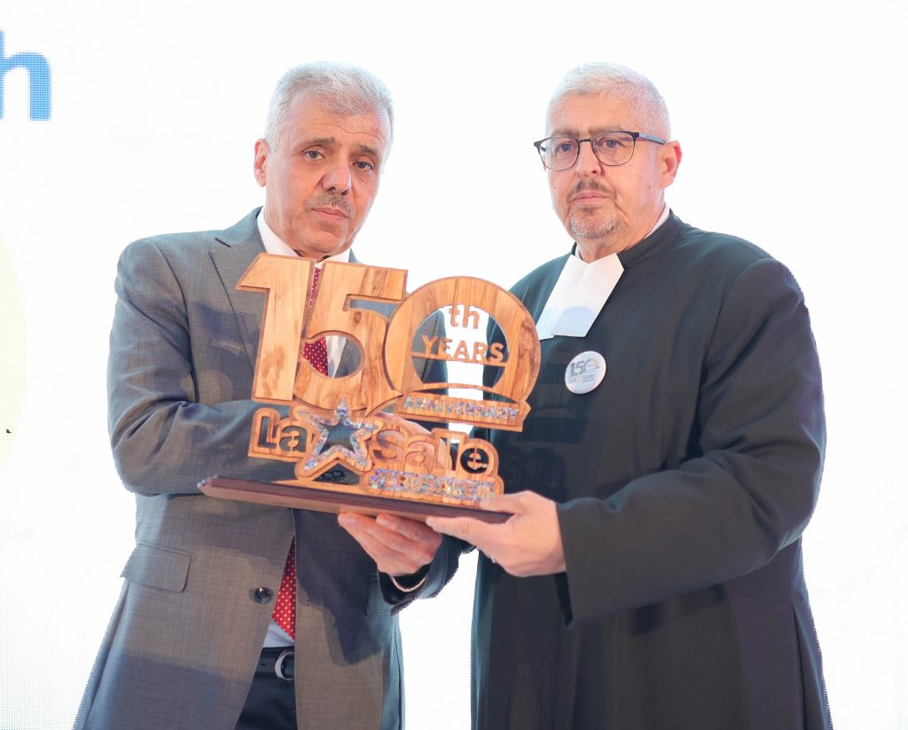 The celebration opened with the national anthem and the school anthem, followed by a program of official and welcoming speeches that underscored Frères School’s pioneering role in promoting quality education, belonging, and community service. Speakers also highlighted the school’s 150-year journey in graduating generations of capable leaders and professionals in Palestine and the region. The welcoming address was delivered by Mr. Daoud Kassabry, followed by remarks from the Prime Minister’s representative. Additional speeches were delivered by Mr. George Al-Nabr, Dr. Nakhla Bdeir, Dr. Osama Abdullah, Dr. Hanna Abd Al-Nour—President of Al-Quds University and an alumnus of the school—along with Mr. Alex Hanna and Mr. Bashar Hussein.