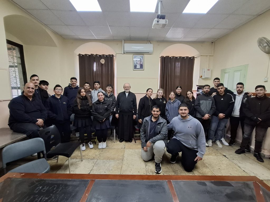 The school welcomed the Regional General Superior, Brother Habib Zraïbi, who arrived from Lebanon, on Wednesday morning, February 11, for an official visit. The visit began with the Divine Liturgy with the elementary section, celebrated by Father Rami Asakreh.