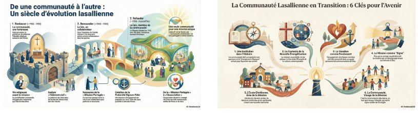 Pour accompagner la lecture des deux volumes de son ouvrage « D’une communauté à l’autre » (Études Lasalliennes n° 19), le Frère Pedro María Gil, du District Arlep (La Salle en Espagne et au Portugal), a partagé quelques infographies produites avec l’Intelligence Artificielle.