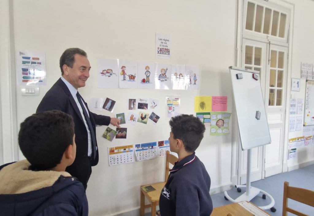 L’ambassadeur a visité la section française du Collège Saint Marc à Alexandrie, établissement inscrit dans une démarche d’homologation. Cette visite a permis de découvrir les locaux de la section, d’échanger avec les élèves, les équipes éducatives et des représentants de parents d’élèves, et de faire un point sur son fonctionnement, les démarches d’homologation ainsi que les projets immobiliers en cours. L’ambassadeur a salué le modèle de mixité porté par la section, première historique pour le Collège et Lycée Saint Marc. Il a rappelé l’attention portée par la France au suivi de cet établissement et à la qualité de l’enseignement dispensé.