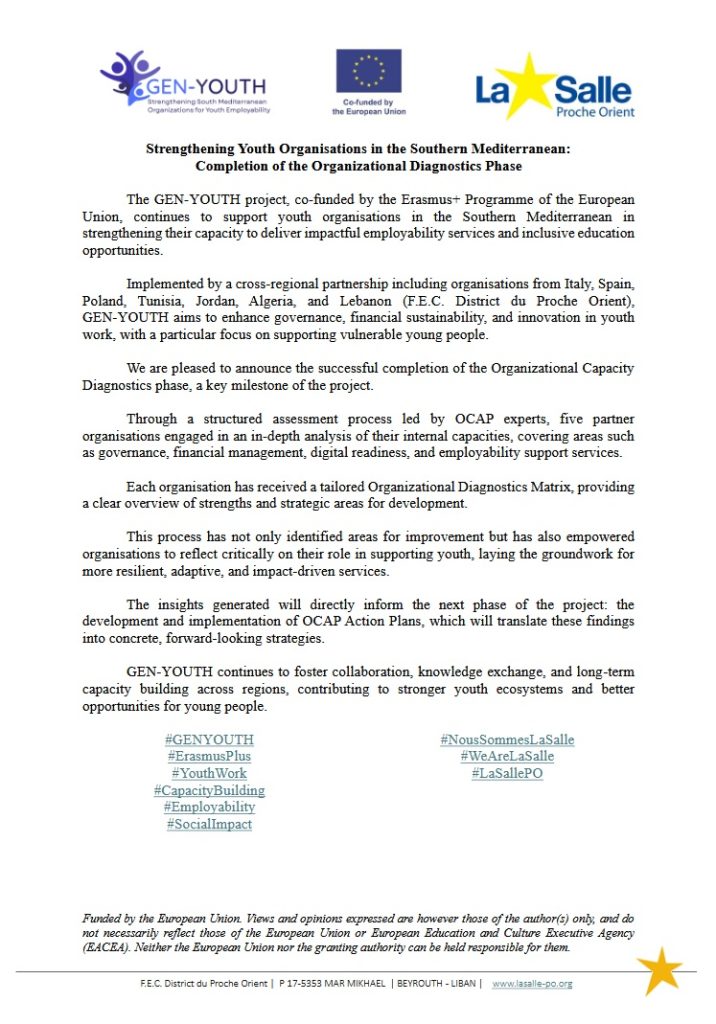 Le projet GEN-YOUTH est officiellement lancé ! Durant les 24 prochains mois, F.E.C. District du Proche Orient Liban s’engage aux côtés de ses partenaires européens et méditerranéens pour créer des parcours durables vers l’emploi pour les NEETs.