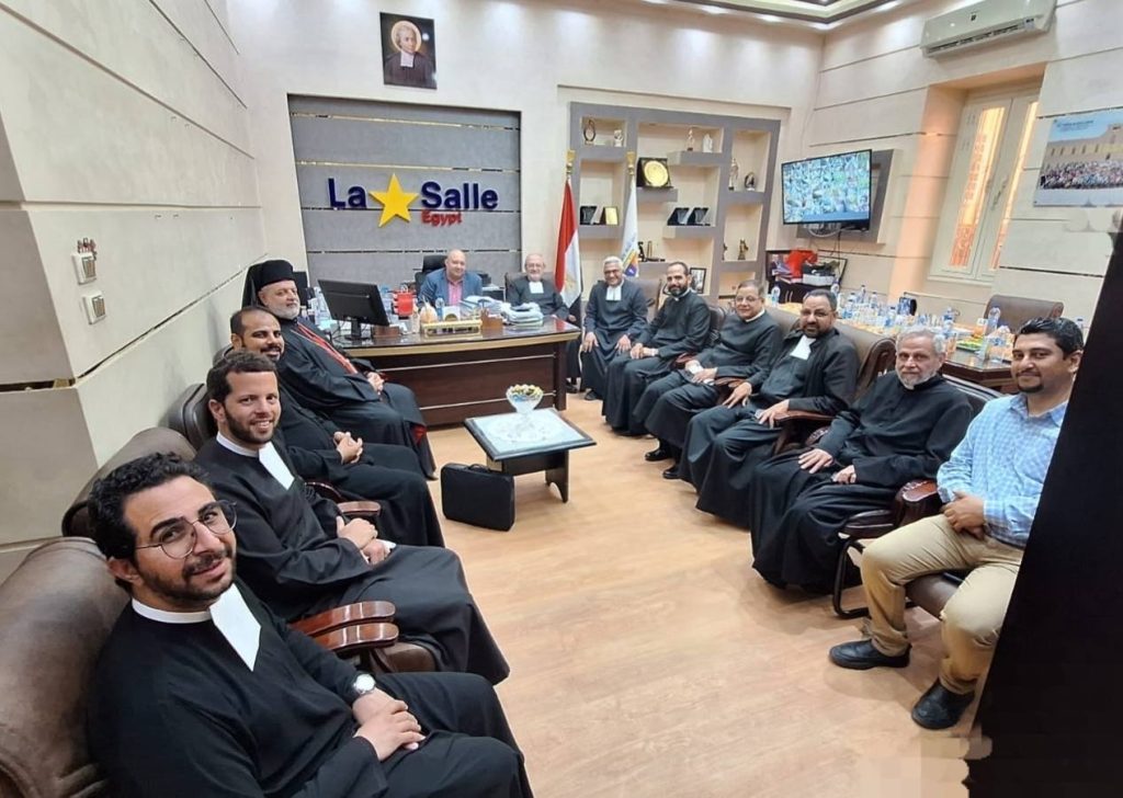 La cérémonie était présidée par Monseigneur Thomas Adly, évêque de Gizeh, Fayoum et Beni Suef pour les catholiques coptes, assisté des pères Marco, Michel et Pachomius. Étaient également présents : Frère Habib Zraïbi, Visiteur du Proche-Orient , M. Bassem Wagih, directeur de l’école , Frère Hossam Nassim, directeur adjoint ; le conseil d’administration ; Frère Sameh Farouk, directeur de l’école Saint-Joseph De La Salle de Khoronfish ; Frère Fadi Salama ; Frère Shenouda et Frère Malak.